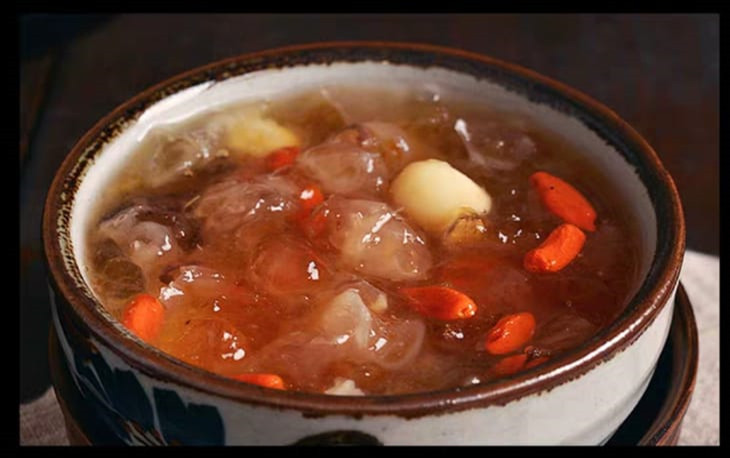 材料:皂角米、桃胶、雪燕、桂花,红枣6颗。